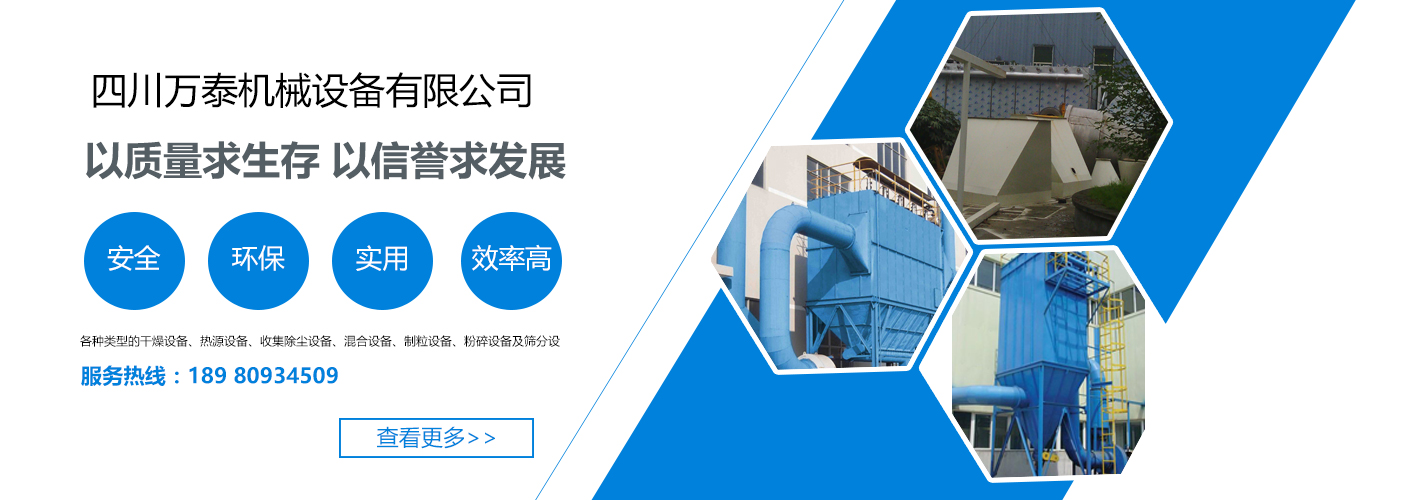 四川万泰机械设备有限公司是一家集研发设计、生产制造、销售及售后服务于一体的综合型实体企业。公司核心技术与主导产品为各种类型的干燥设备、热源设备、收集除尘设备、混合设备、制粒设备、粉碎设备及筛分设备,产品广泛应用于医药、生物、化工、食品、饲料、电子、环保等众多领域。